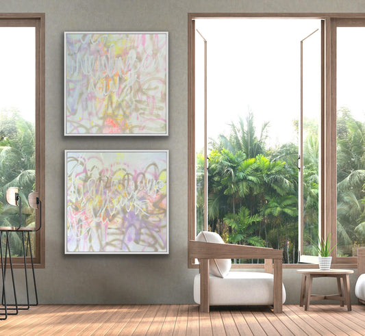 Please note that most of the abstracts were painted on un-stretched canvas and will ship rolled in a cardboard tube, ready for framing/stretching at your local framer.