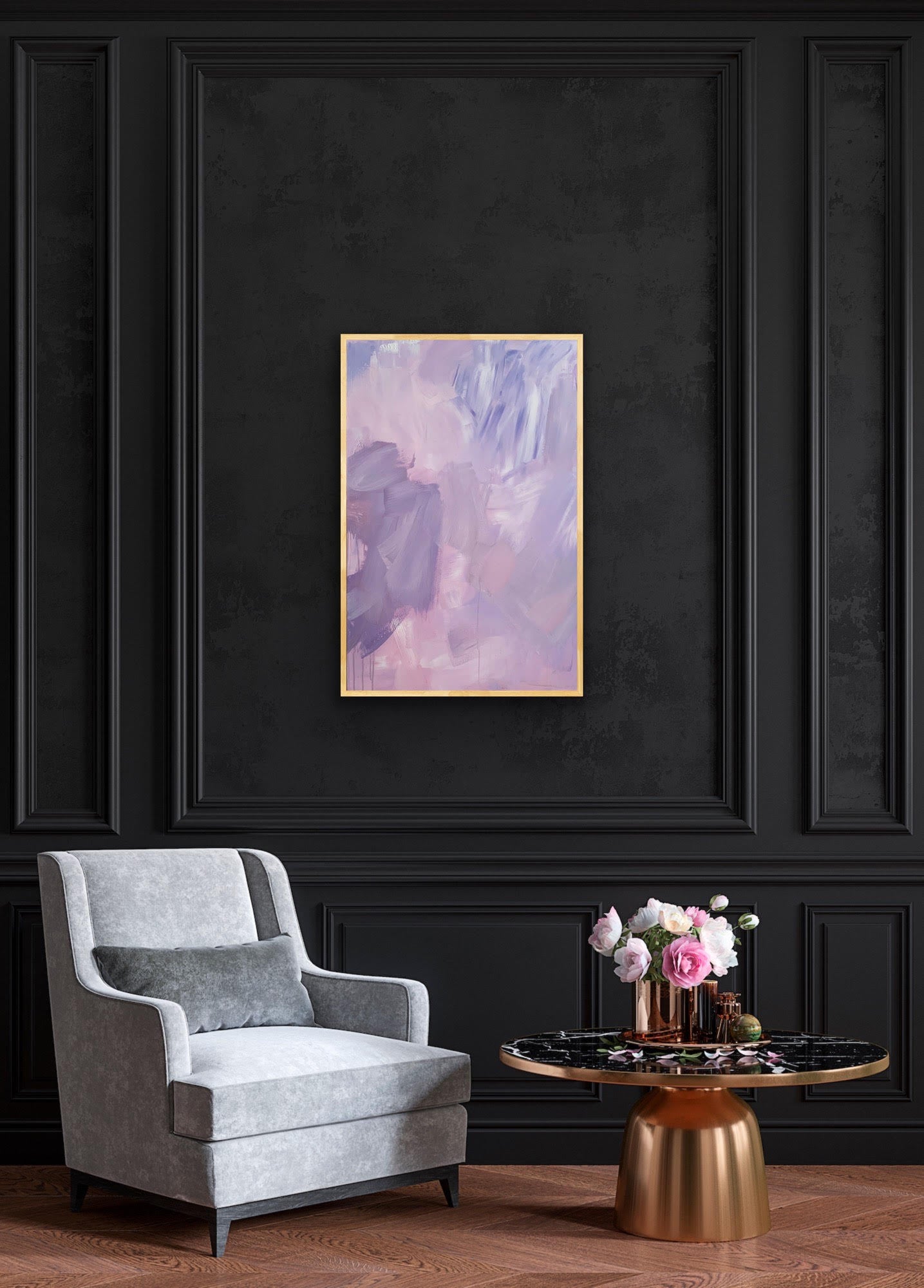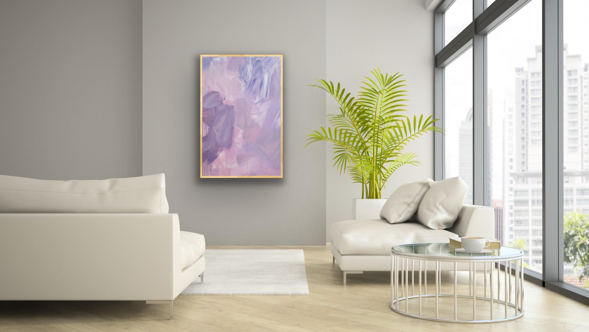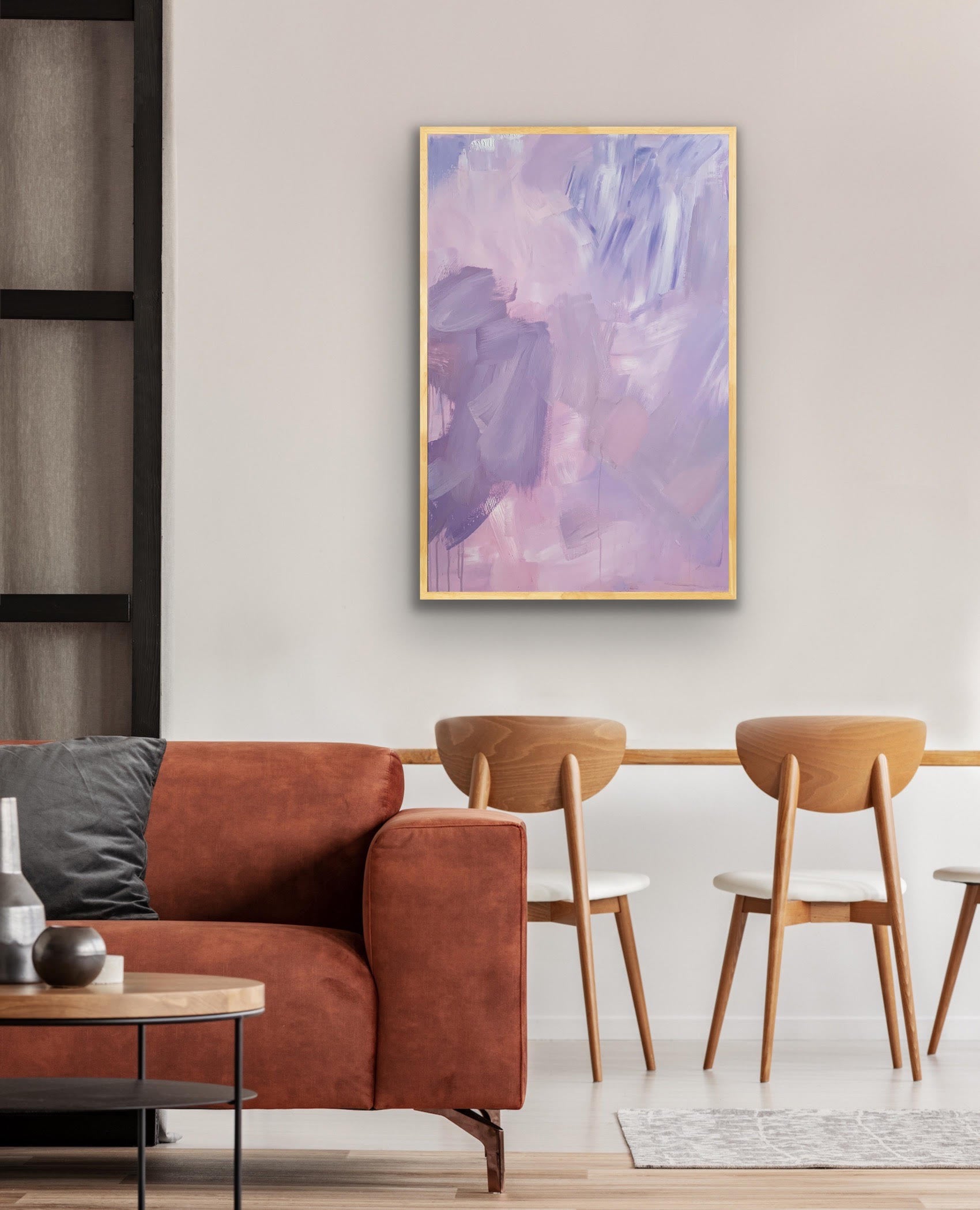 The strongly soothing, yet uplifting color palette of this piece, along with the wildly free, yet harmonious brushwork, make this mid-sized abstract a piece that will help its collector create a beautiful atmosphere in their home or work space.