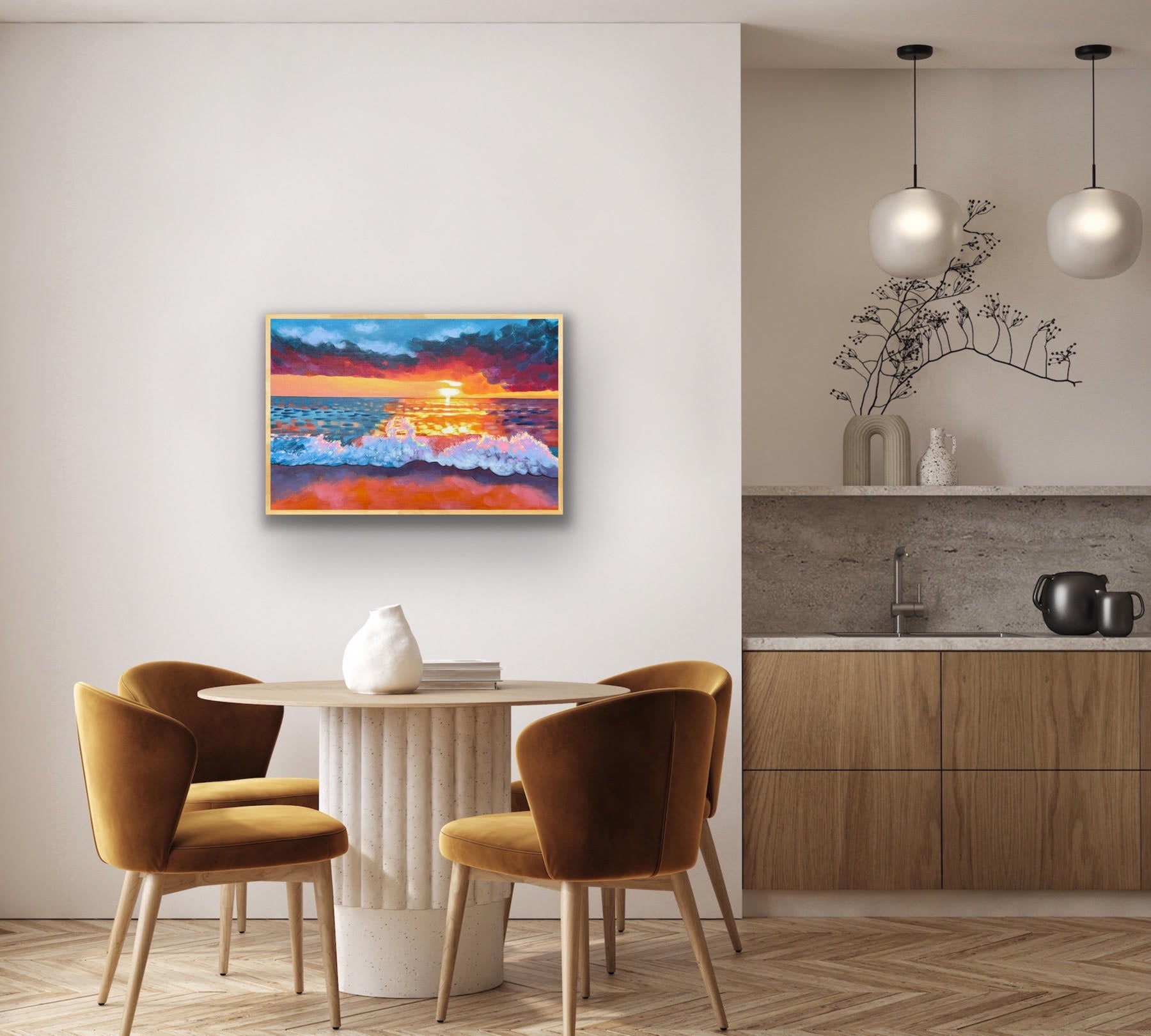 After seeing the popularity and positive response to the first piece in this series, I decided to add two more pieces to the collection. This warm, vibrant piece will bring the magic of sunset moments to your space.