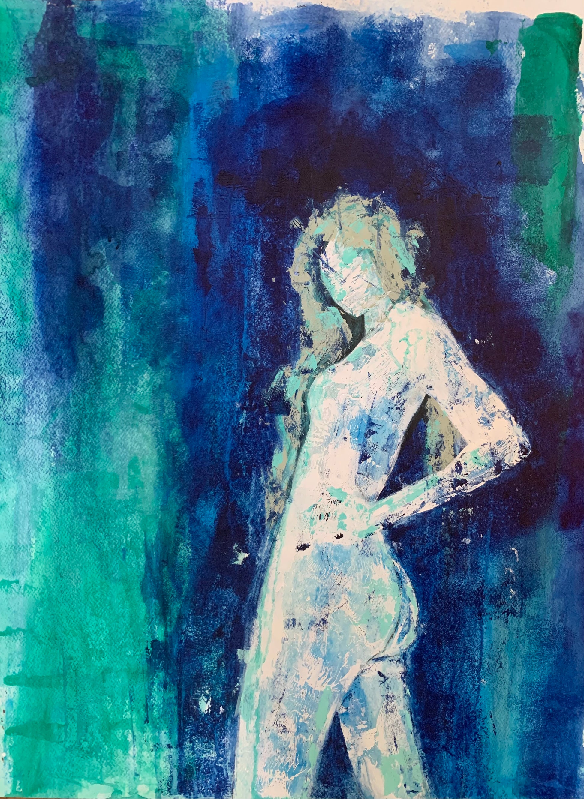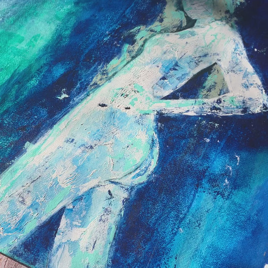 Painted 95% with rollers and 5% with palette knife. A very fun and freeing process! This paper piece will be stunning framed and hung in the right spot.
