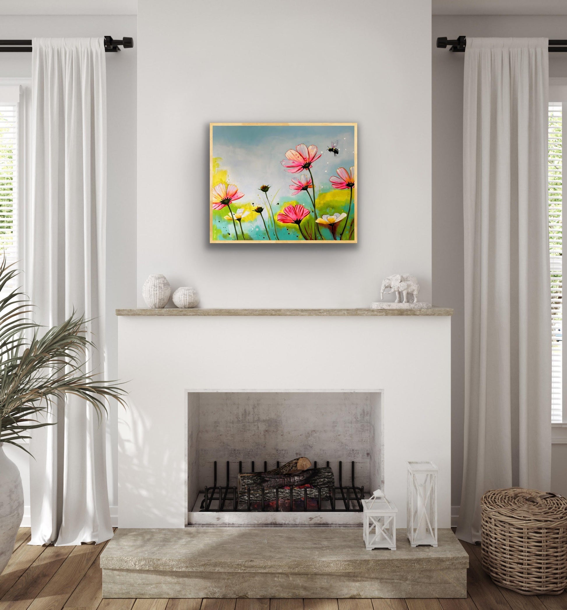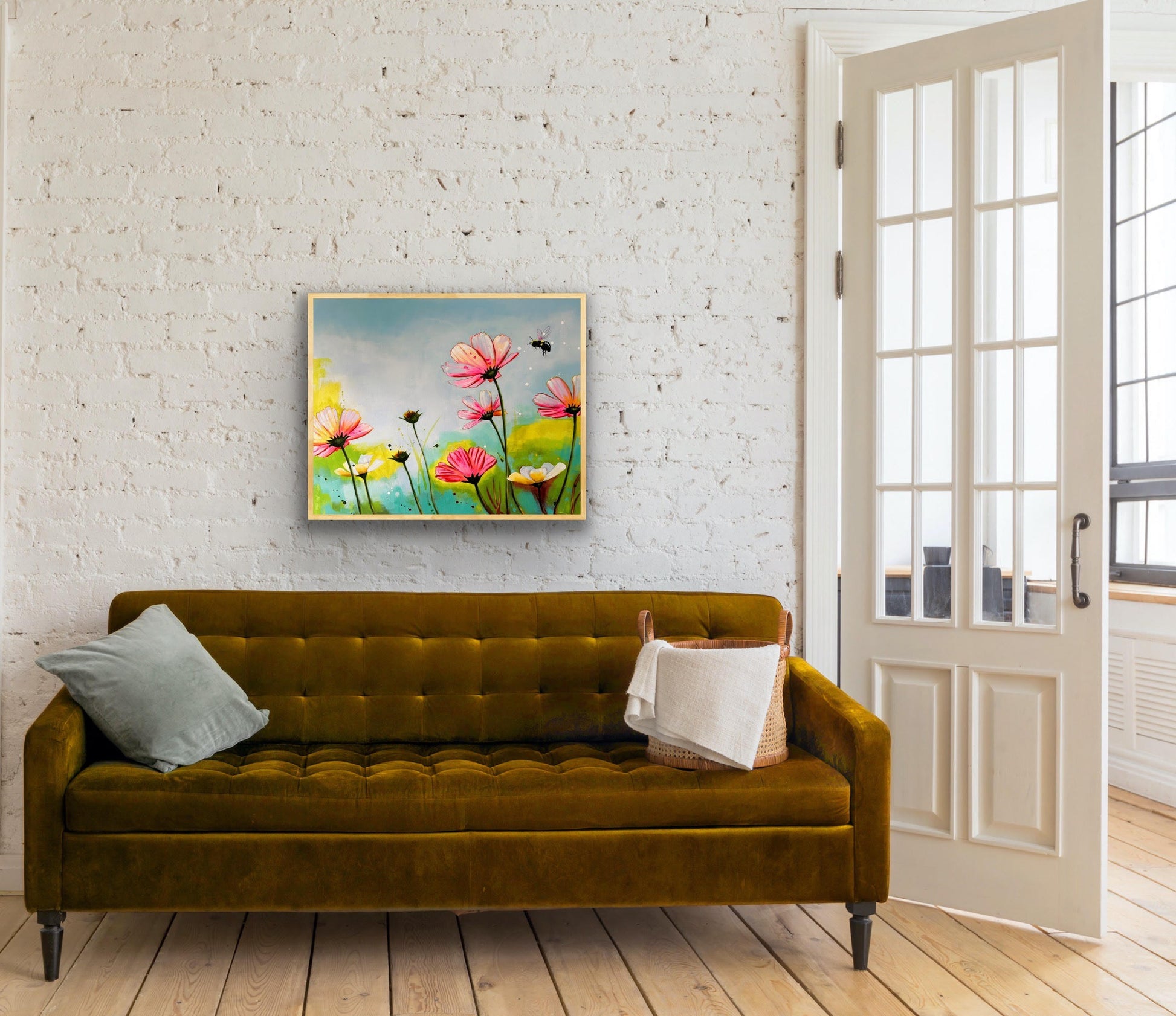 After seeing the popularity and overwhelming response to the first three pieces in this series, I decided to add three more pieces to the collection, that is inspired by the beauty of cosmos flowers. Brighten and uplift your space with this glowing, colorful piece of original art!