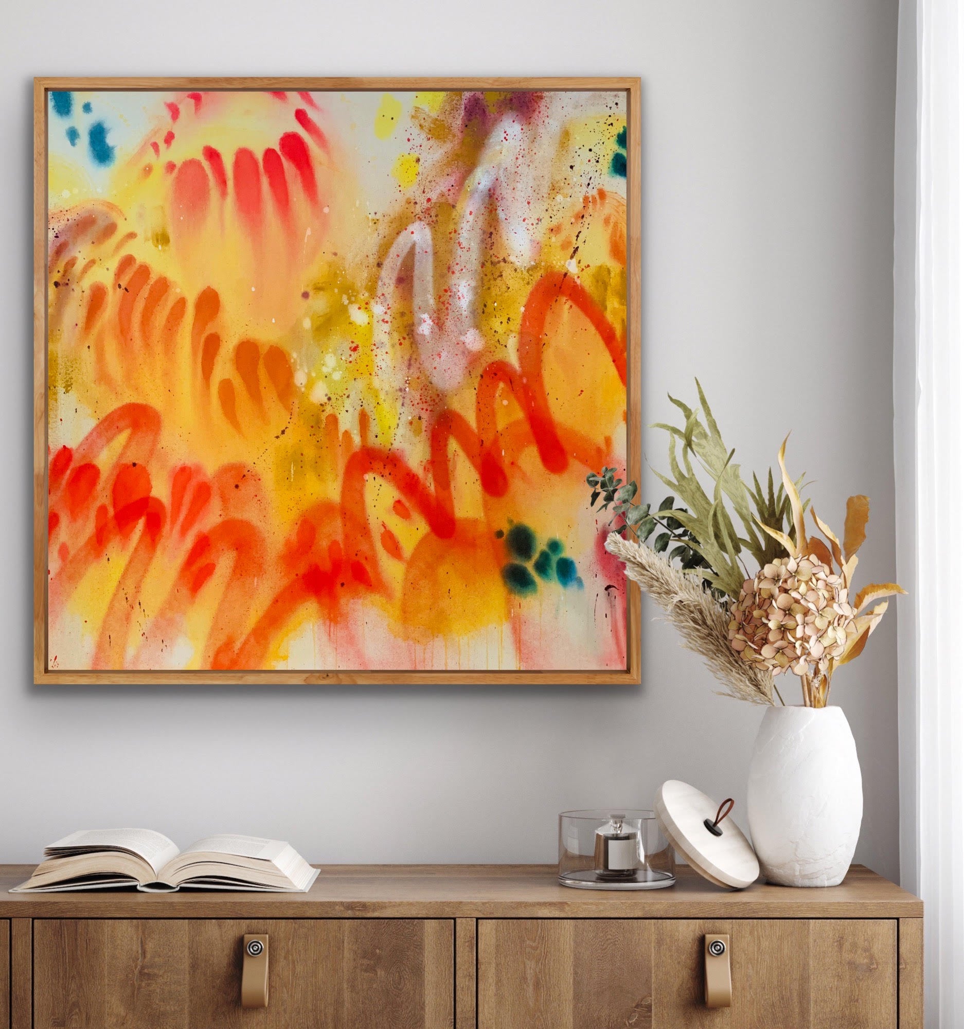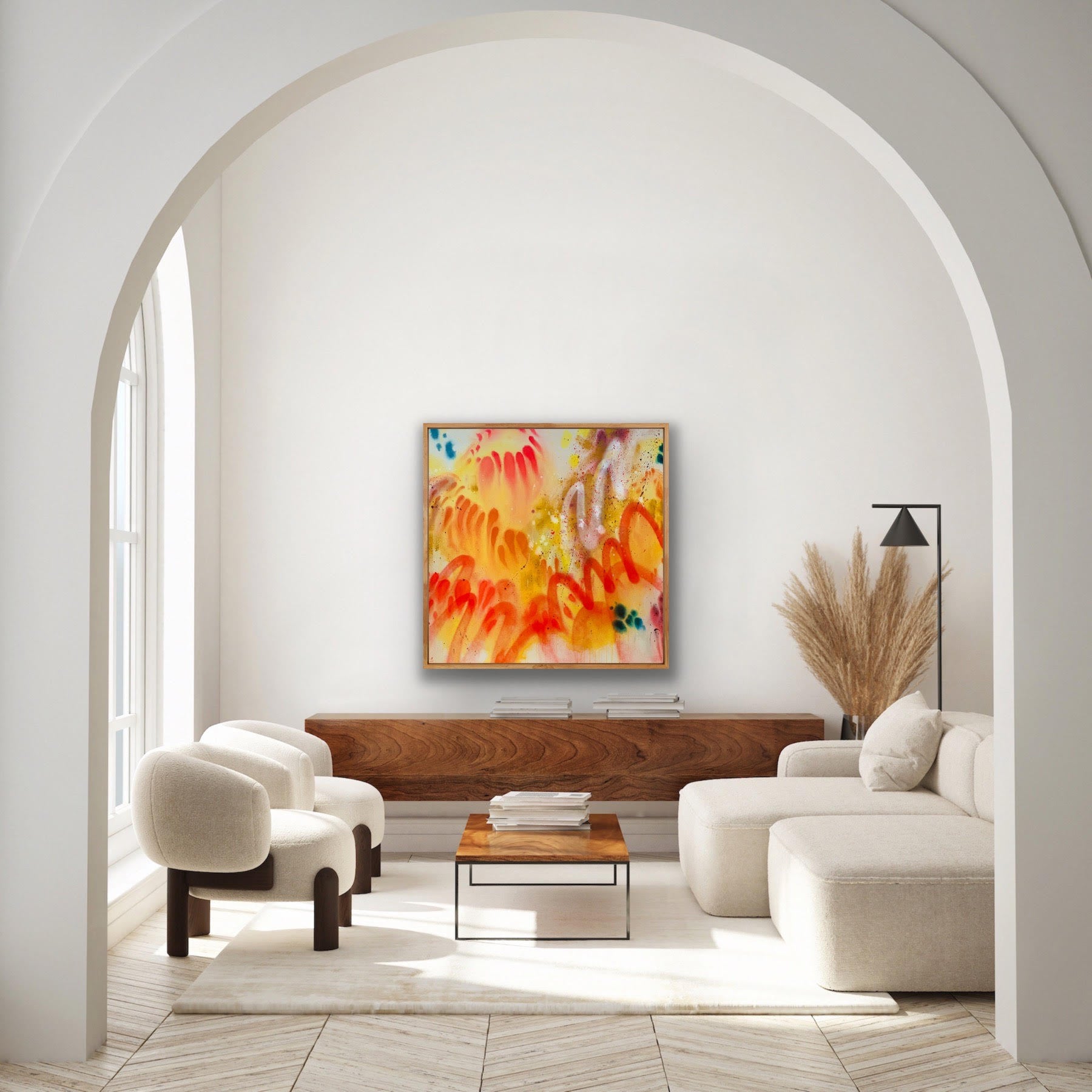 Colorful, airy and earthy, this mid-large sized piece was the first in the Summer 2024 Abstract Collection, and like most of the abstracts, was named by the painting in the midst of the process. It can easily be stretched/framed by your local framer.